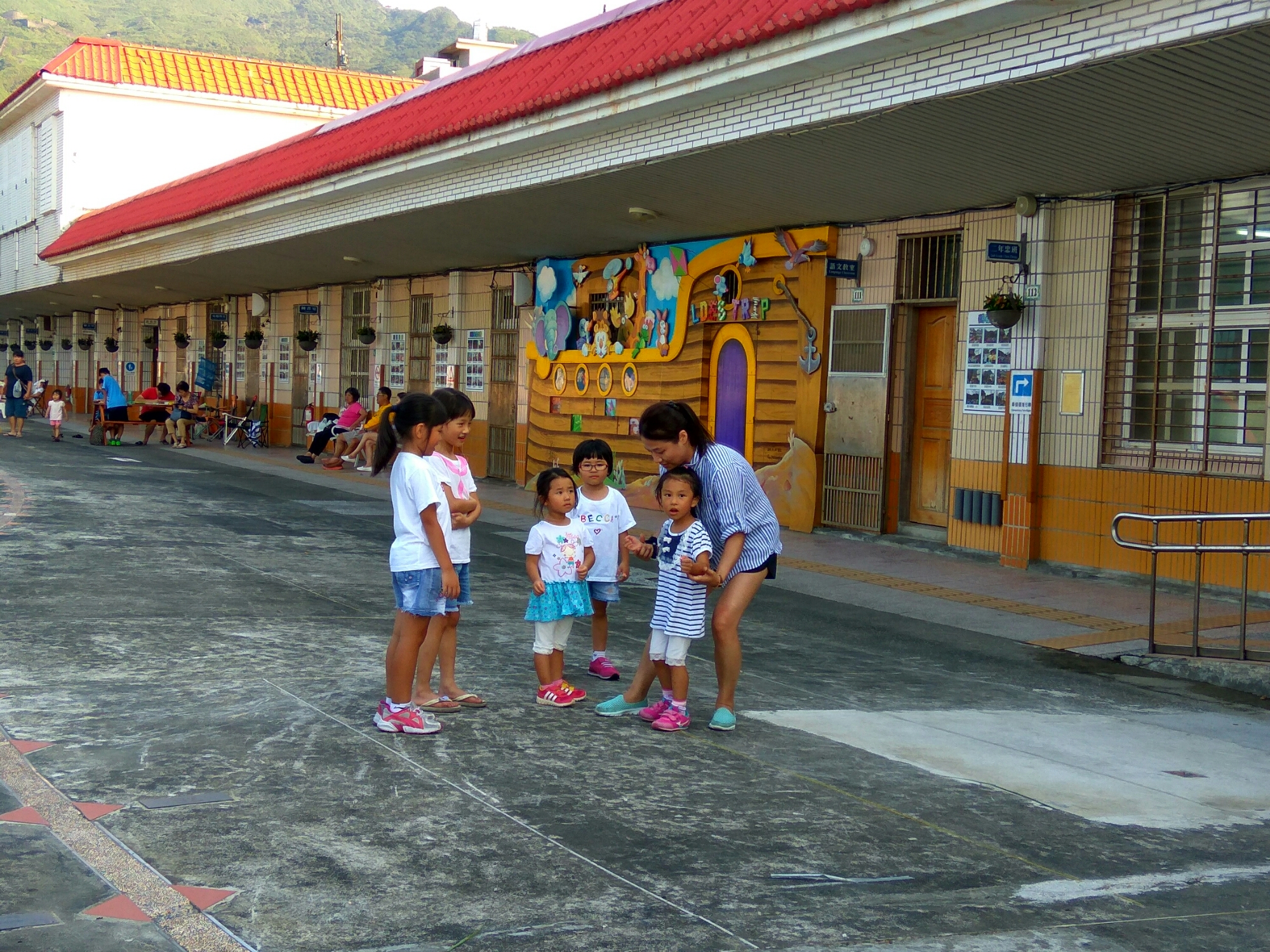 我們先在廣場上休息,孩子們先來個破冰活動,由美麗的Joan阿姨示範解說。