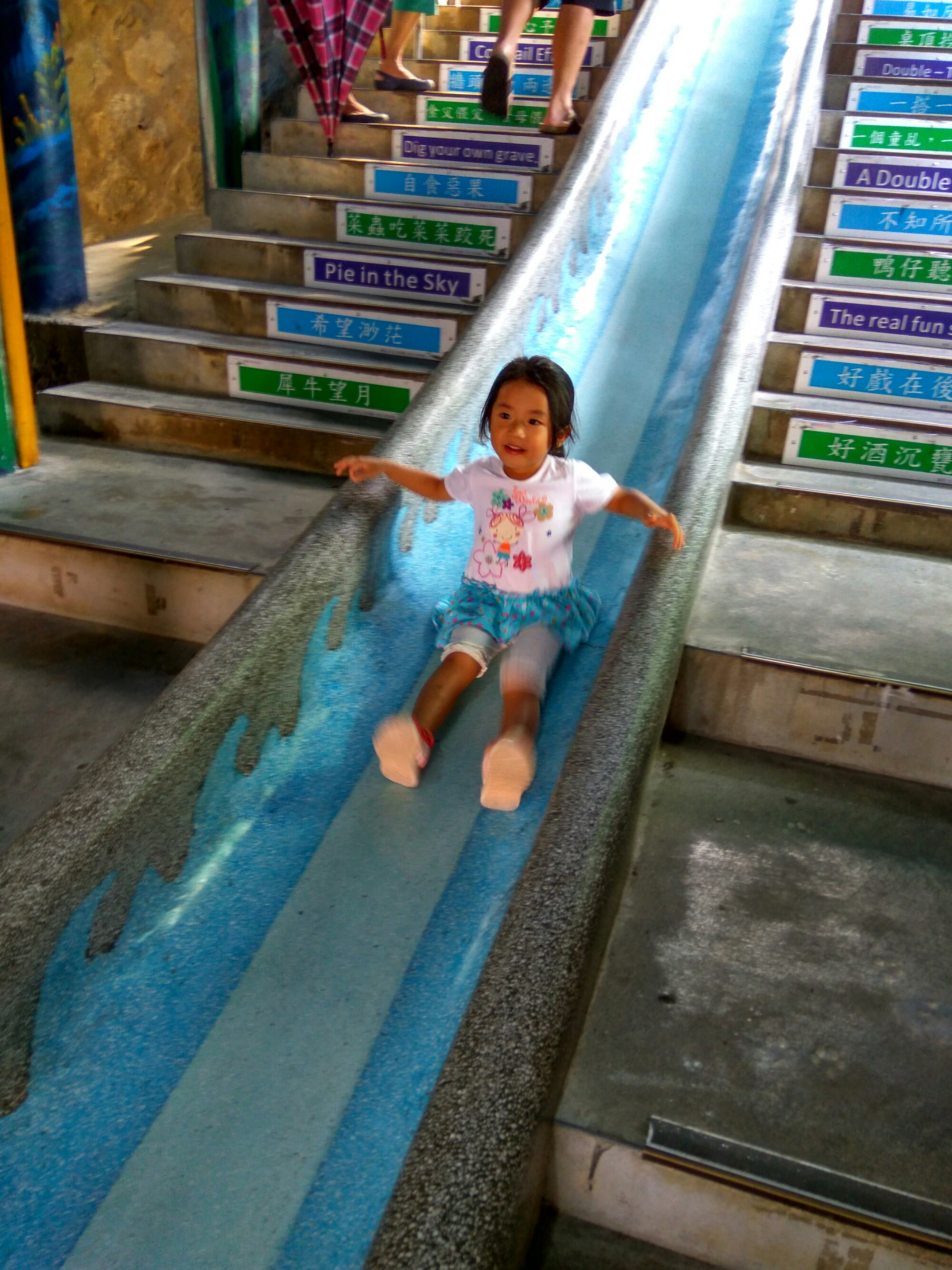 三點多到達時,停車場出乎意料之外的爆滿,磨石子溜滑梯是小孩們玩不膩的遊戲設施,廣闊的海景讓這兒成了觀光景點。
