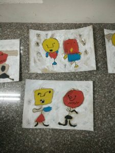 用米羅的畫法,畫出兩母女分別時的樣子: